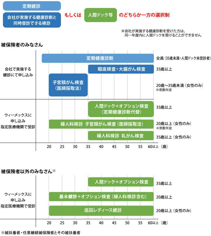 田辺ファーマ健康保険組合では、被保険者やそのご家族のみなさんの健康診断の補助を行っています。当健康保険組合が委託している代行事務機関「ウィーメックス株式会社」へお申し込みください。